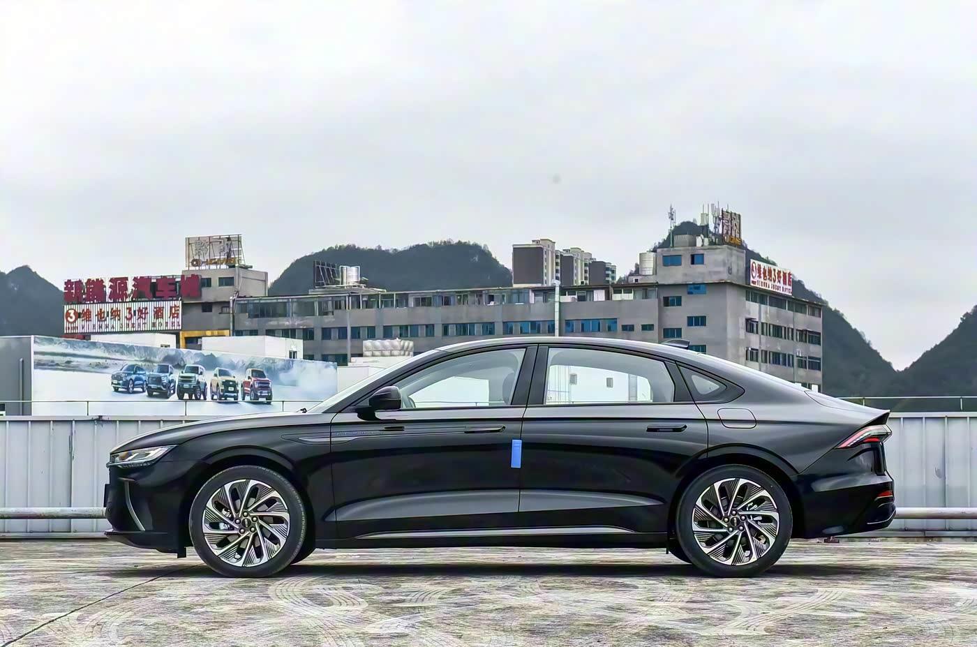 再来看车身侧面部分,车身尺寸达4982×1865×1485mm,2930mm轴距较良马3系长近80mm,奠定舒展的中型车姿态。侧面以溜背好意思学为中枢,车顶线条从B柱缓缓下千里至车尾酿成小鸭尾,既保留头部空间,又将风阻所有这个词压低。19英寸亮黑镀铬双色多幅轮毂搭配235/40 R19宽胎,视觉冲击力拉满且进步持地力。荫藏式电动门把手与车门下方镀铬饰条呼应,营造“长轴距短前悬”的豪华感,同期幸免了传统门把手的突兀。