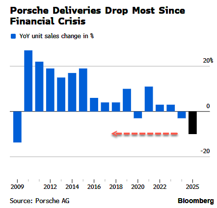 公共豪华跑车阛阓的领军者保时捷正濒临自2009年金融危急以来最严峻的挑战,其“听说”般的高增长光环在2025年突然阴晦。最新数据自大,这家德国制造商际遇了16年来最大幅度的年度销量下滑,标识着其长期以来的阛阓韧性已被冲破,公司正插足一个清贫的转型与重组期。