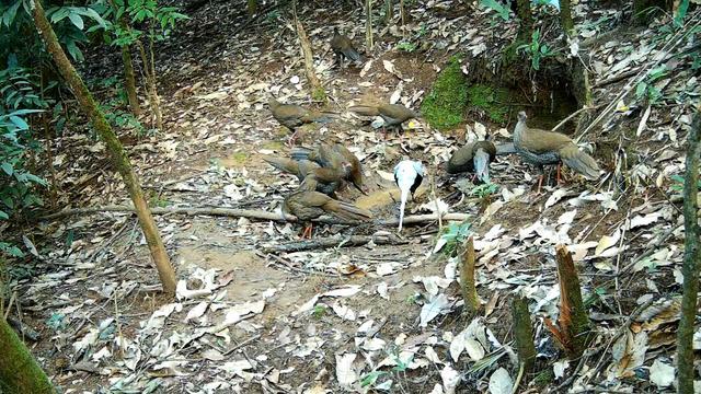 画面中,这群白鹇在林下水源地欢然散步、垂头觅食、相伴而行。雄鸟羽毛皎皎如雪,尾羽修长洒脱,眼周裸皮呈现娟秀的赤红色;雌鸟通体棕褐,体态壮健,脚掌呈橘红色。它们时而机警昂首不雅察环境,展现出该物种暗藏严慎的天性。据了解,白鹇在秋冬季节常结成小群行径,但由于其素性尖锐、栖息环境粉饰,在旷野清醒不雅测到如斯范围的集群表象实属坚苦。
