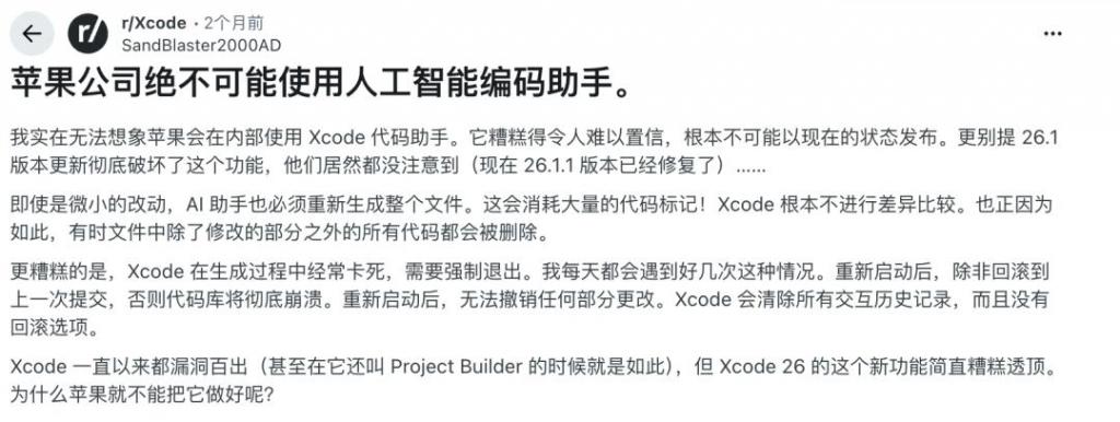 在好多资深设备者看来,目下的 Xcode AI 依然像是一个还没兴师的学徒,它在处理跨文献的复杂重构时发达得并不如 Cursor 等竞争敌手慎重。