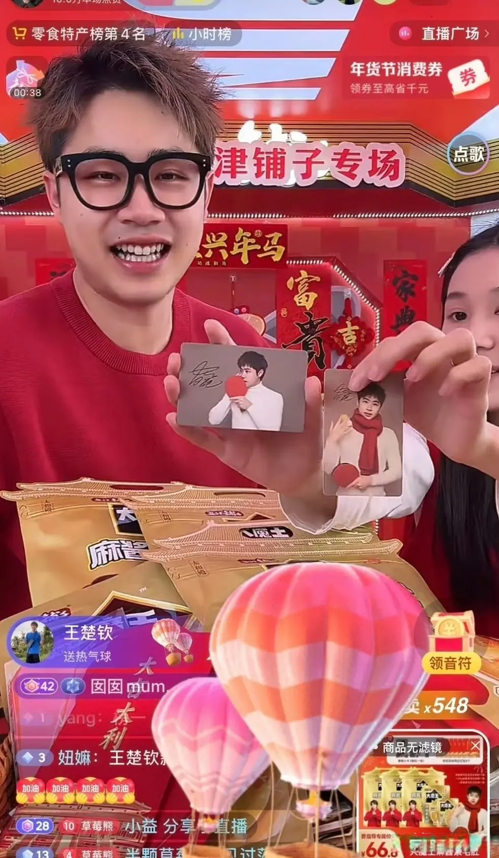 道理打赏与金句引爆热搜。1月17日,王楚钦以真名账号(品级25级)参预前队友曹巍的“津铺子专场”直播间,通过施助“墨镜”“跑车”等诬捏礼物少顷登顶孝敬榜,助力直播间冲至“零食特产榜第4名”。被粉丝认出后,他飞速退出直播间,全程互动约1分钟。