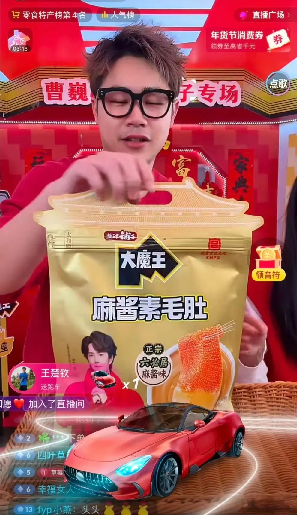 王楚钦的突袭使曹巍直播间不雅看量、点赞量(单场超16万)及家具搜索量短期飙升,直播间名次从零食特产榜低位跃升至第4名,部分时段冲至第1名。其明星效应平直激动“津铺子”品牌关系家具曝光度激增。