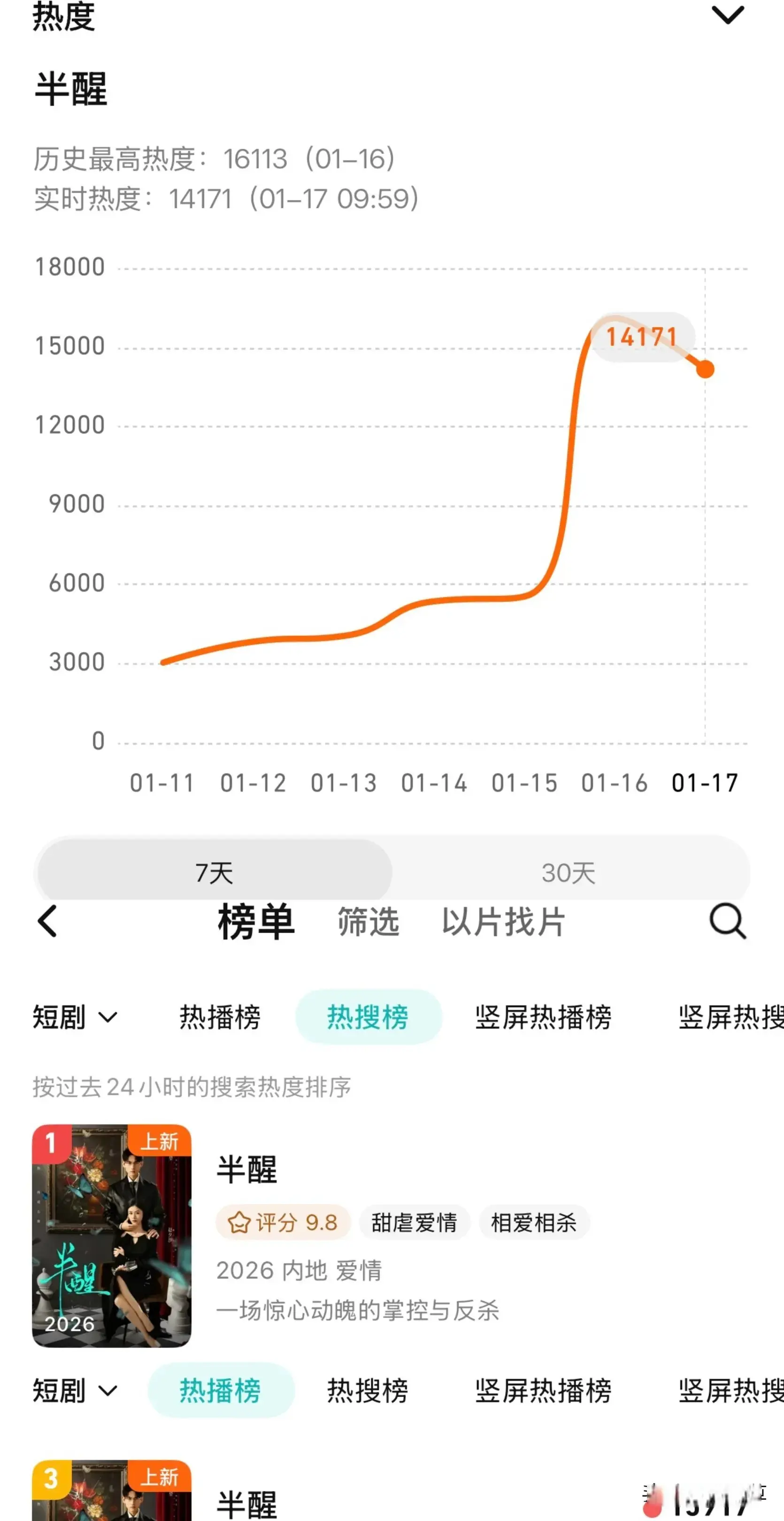 腾讯视频最近上新了一部短剧,叫《半醒》,上线第一天就炸了。不是靠宣传遮天盖地,也不是靠老戏骨压阵,而是实打实用剧情和演技把不雅众钉在了屏幕上。首日放出6集,热度最高飙到16113,径直杀进短剧热搜第一,热播榜也稳稳拿下前三。这数字什么见解?粗豪短剧上线能过万齐算可以了,它一上来就接近1.7万,有点东西。