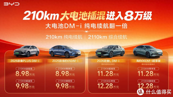 在A级家轿阛阓,2026款秦PLUS DM-i和海豹05 DM-i的210km版块,官方谈判价为8.98 - 9.98万元。以往在这个价位,耗尽者只可买到纯电续航110km附近的版块,而比亚迪奏凯将长续航打入中枢本地,让同价位的竞品顷刻间显得“续航短板”。