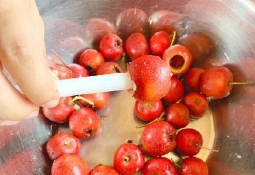 泡好后,把山楂捞出来冲干净。找根粗吸管,比如喝奶茶那种,八成用筷子也行,把山楂的核和果蒂去掉。这一步有点费手,但为了孩子吃得安全,咱得细心点。去核后的山楂看着就干净,摆哪里跟红坚持似的,格外漂亮。