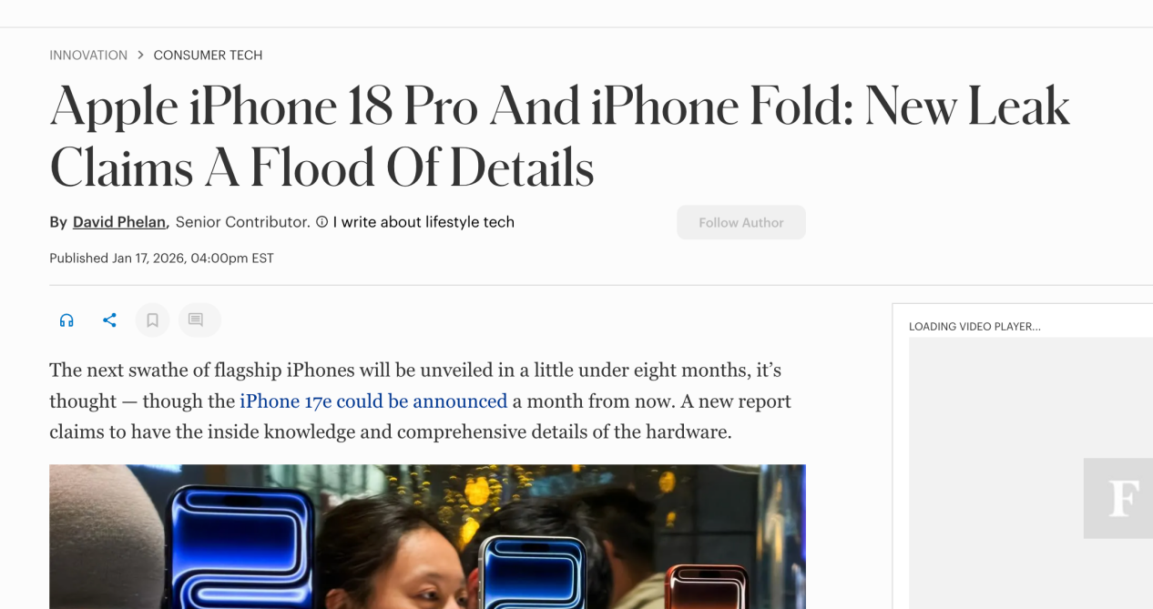 【各人网科技抽象部报谈】1月18日,福布斯报谈称,据最新爆料,苹果下一代旗舰iPhone或将在八个月内发布,而iPhone 17e则可能更早发布,于一个月背面世。一份来自里面的音信深远了多款新机的硬件信服。