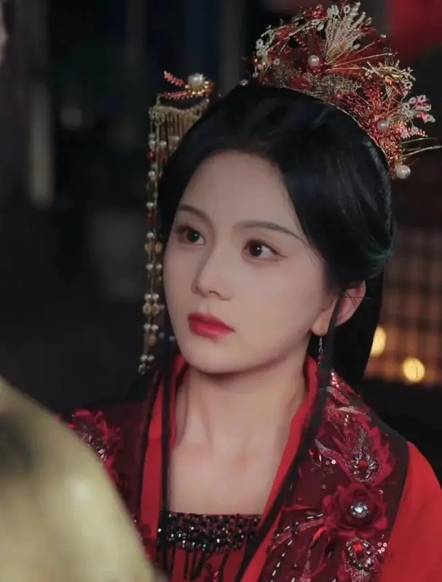 她在古装里阐发高出,收货于假发线和额部饰物躲闪了发际和额头高度,眉形加粗,卧蚕加强,柔光灯从下方打少量,脸部中心更亮,侧面暗影更轻。