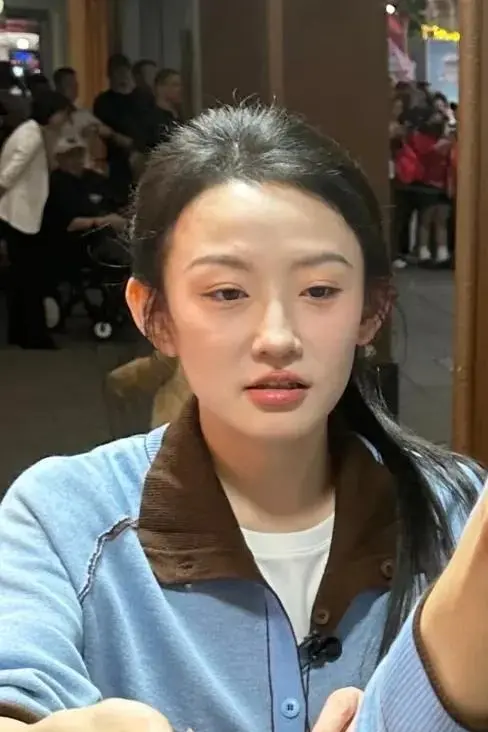 素颜中,她的嘴角轻细下垂,偶发小粉刺,但详细感亲近。